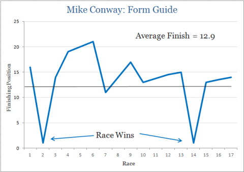 Another troubling factor came in the way of technical failures; Conway had three DNF’s this year with one crash and two car issues. This led to him only completing 88.8% of the laps run this year compared to 99.99% for championship winner Will Power.