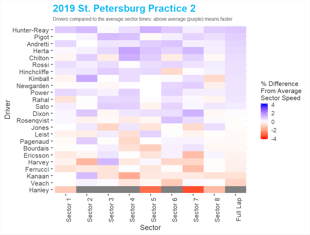 Both of Friday’s practice sessions for the season opener at St. Petersburg have finished up, which means we can take a closer look at the sector heatmaps from each of these sessions.
