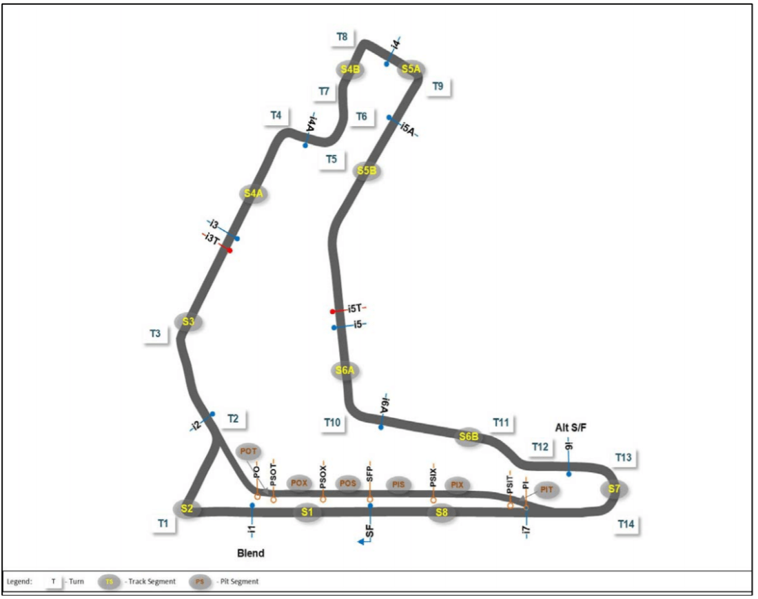 The sectors are based on this track map, with the sectors show in yellow text: