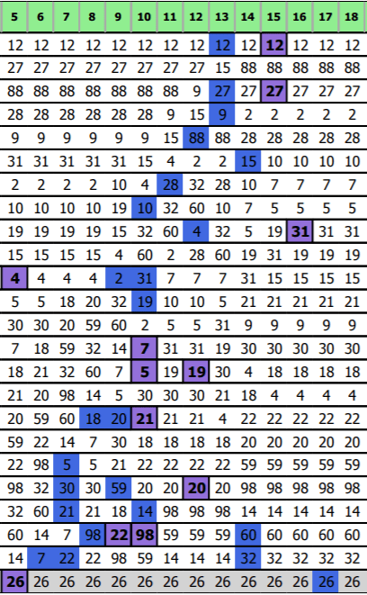 Between laps 5 and 18, every car came into the pits as indicated by the blue squares. The starting position measurement would be on lap 5 and the final position measurement would take place on lap 18. The cycles must be green flag stops or else they will not be counted as caution-affected pitstops will usually catch some drivers out and there is less of a strategy decision as cautions make pit decisions easier. Getting caught out because of an unlucky caution is bad luck, not bad strategy.